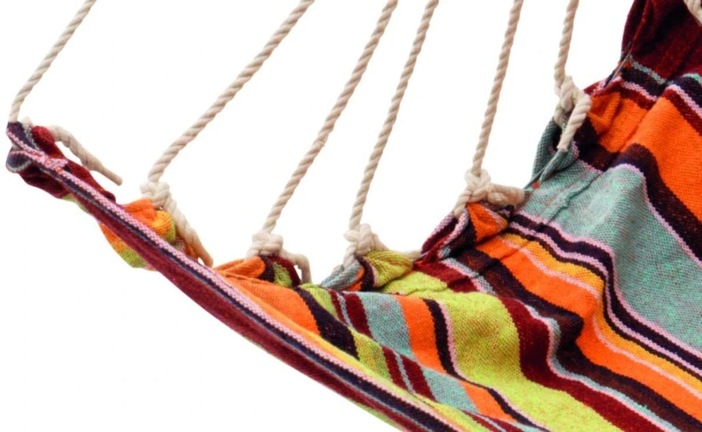 Lying back on the durable, comfortable 100% cotton fabric, stable relaxation is assured. Each hammock has a handy carrybag for convenient storage and transport.