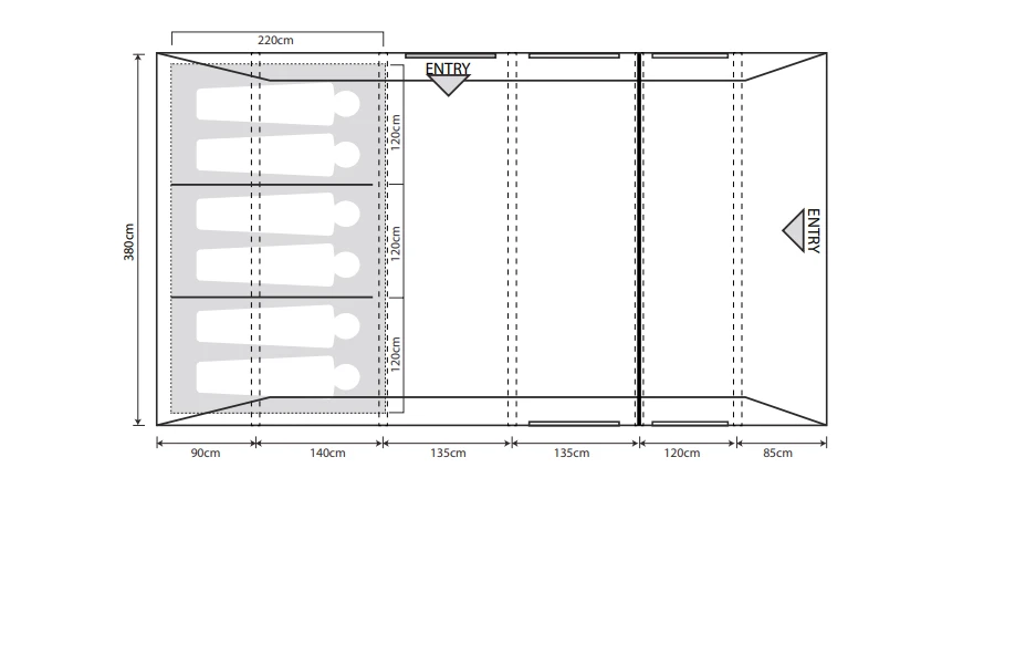 - Darkened Twilight micro polyester 6-person bedrooms with 2/2/2 divider