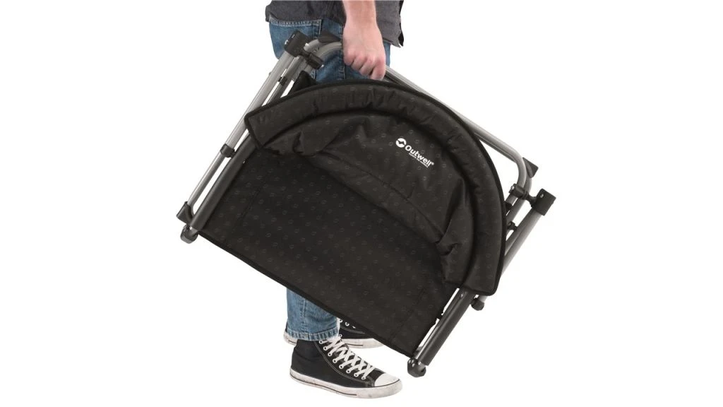 A wide seat and padding for your back plus foam padded arms add up to light, reliable comfort. When it’s time for you to move on, its flat packed size makes it easy to carry and stow away efficiently.