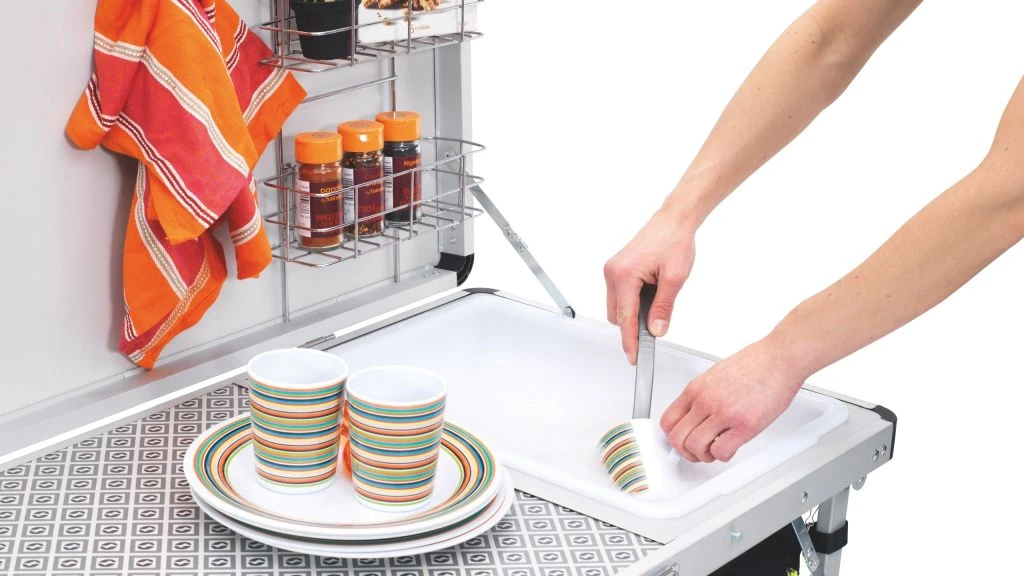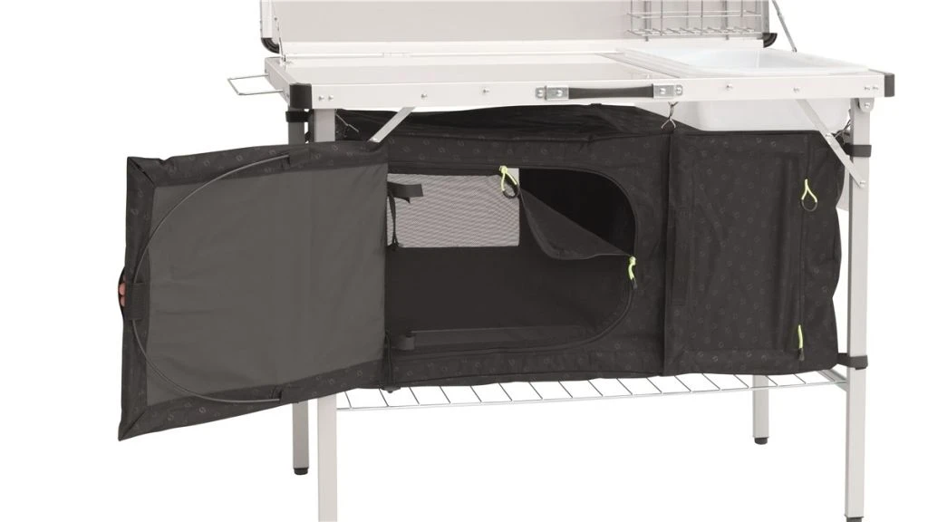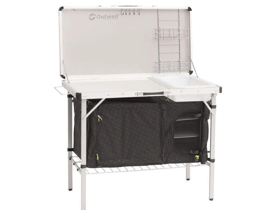 Not only does this invaluable table provide a stable place to prepare and cook a meal but also includes enclosed storage for pots food and gas.
