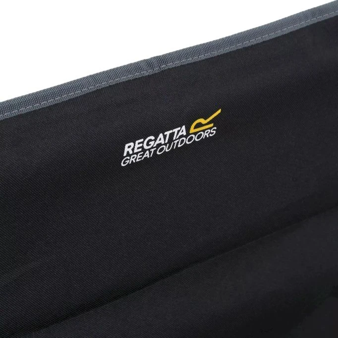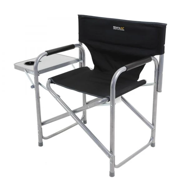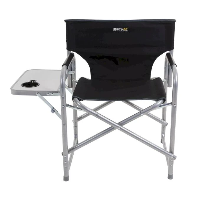 Regatta heavy-duty, steel-frame garden/camping chair with a fold-out side table. Folds down flat and packs away.
